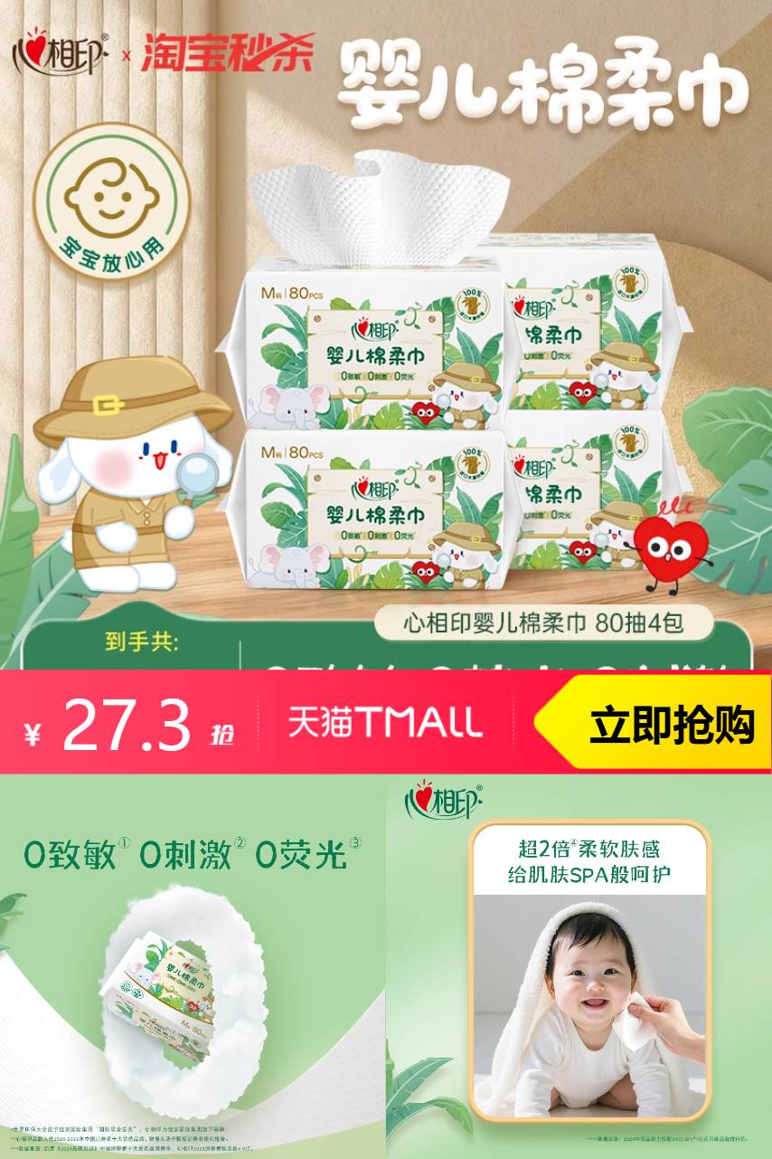 心相印 心相印棉柔巾婴儿洗脸巾孕妇80抽*4包 1元减13.5 商品纠错