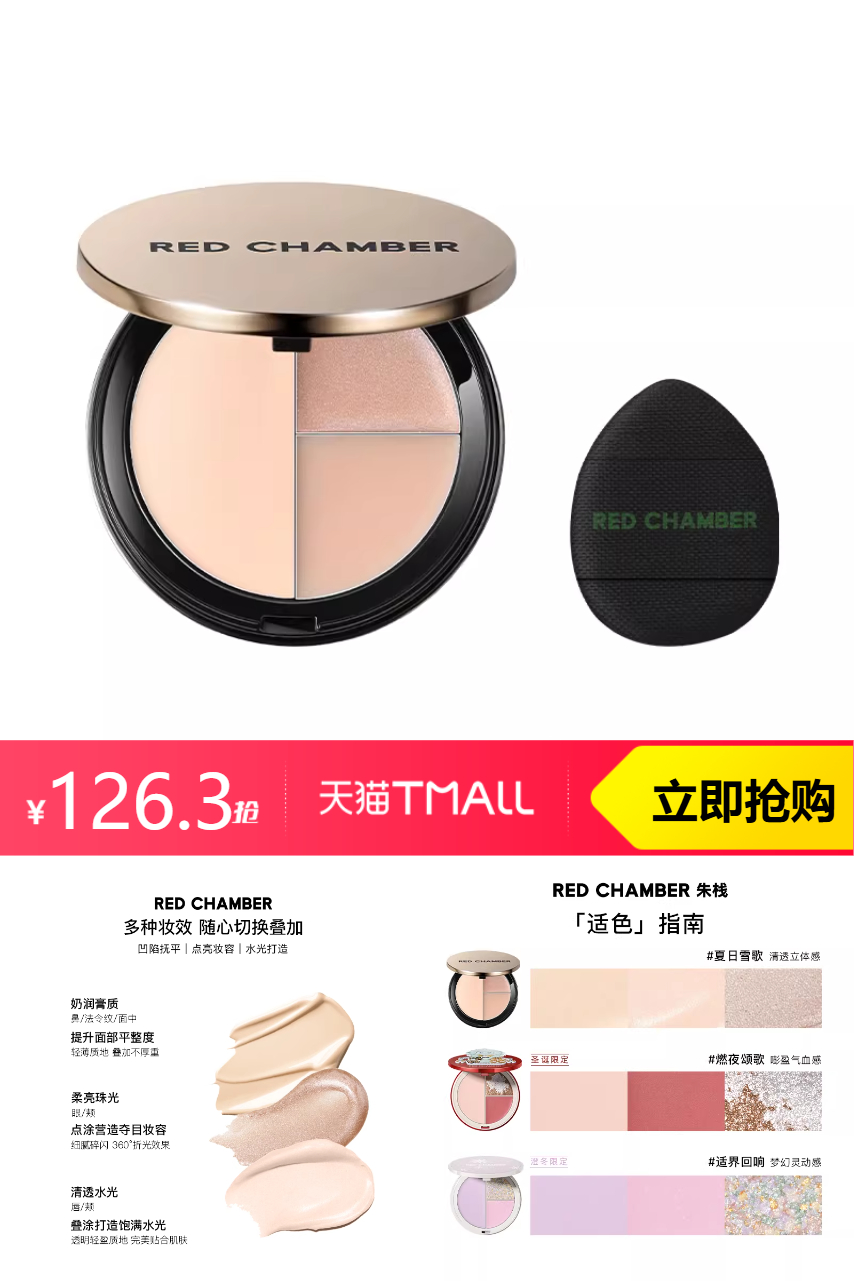 【原价179-优惠券10-礼金8.8-官方立减30-金币5.37-凑200减13.97-礼金3.9-精致生活券凑200减13.04=93.92到手】朱栈RC打光盘多用三色高光盘夏日雪歌提亮,独特的提亮效果,可提亮肤色、提亮眼周,即使是黯淡无光的皮肤也能立刻变得焕发光彩!