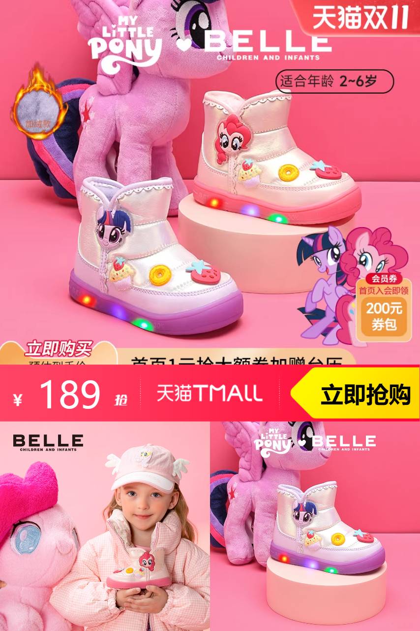 百丽 百丽童鞋小马宝莉联名2025新款雪地靴 1元减100 商品纠错