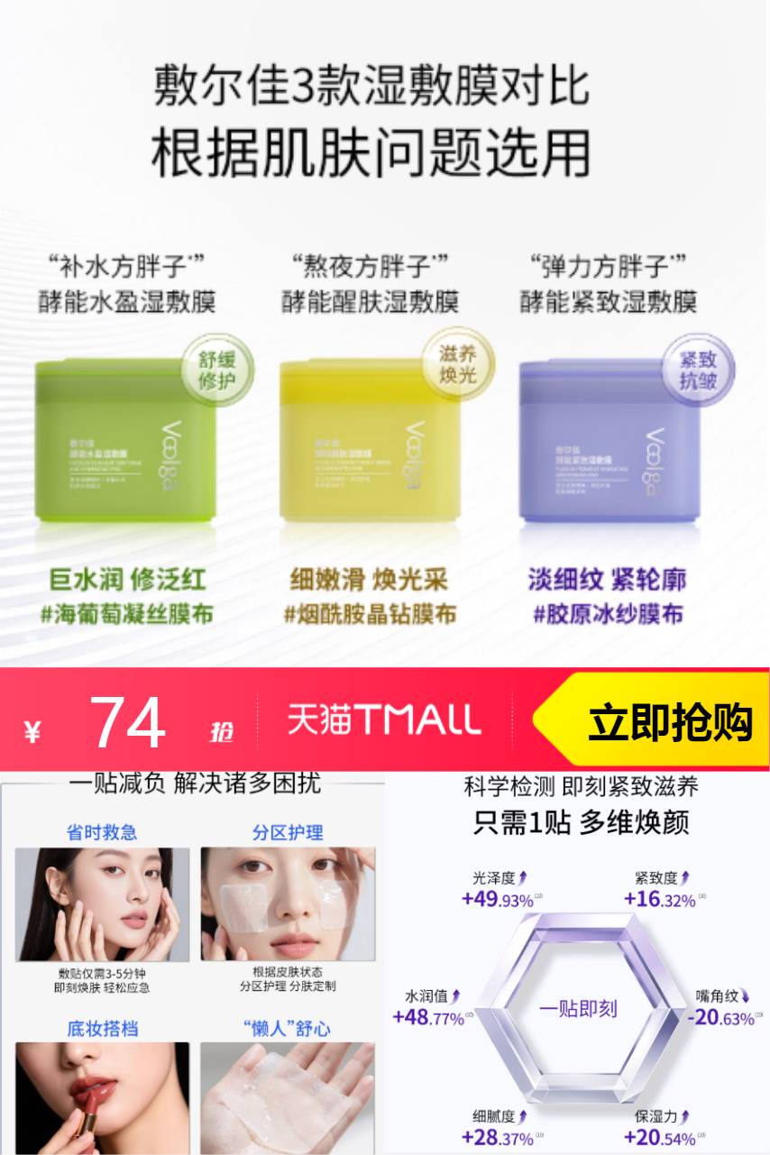 推荐:敷尔佳酵能水盈醒肤紧致湿敷膜70片/盒