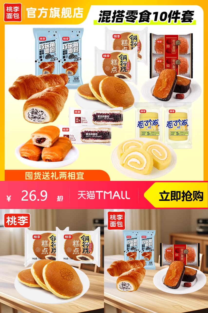 推荐:【买5送5】桃李早餐软面包10件组合装
