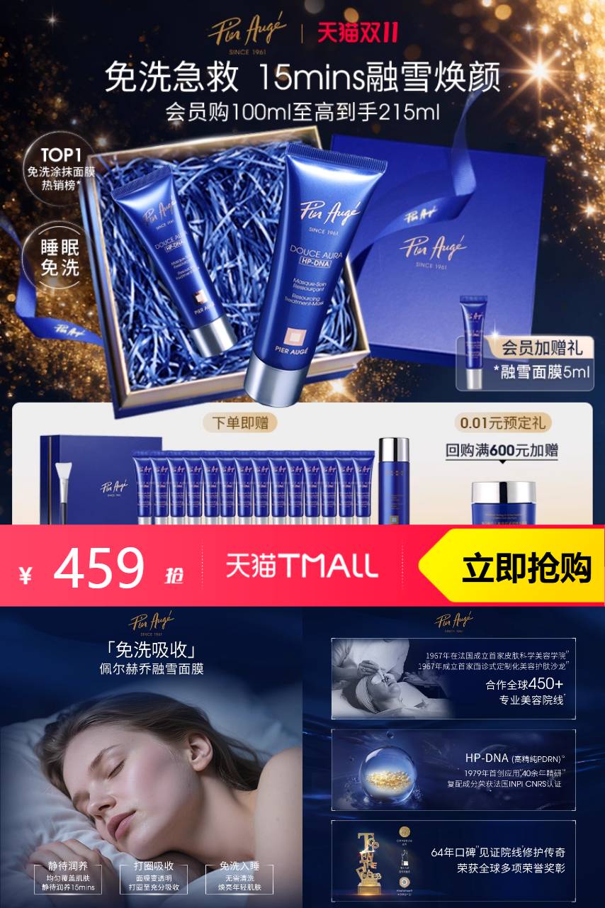 【原价541,官方立减65,店铺减17,88vip减22.95,淘金币抵扣10.25,凑单消费券到手仅需372.5】佩尔赫乔融雪面膜三文鱼精华睡眠免洗,褪红抗炎/均匀肤色/抗衰紧致~