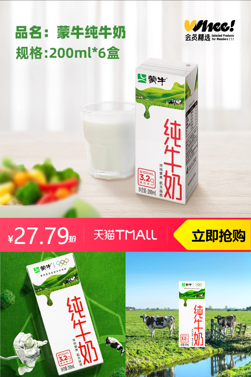 【首页下滑至1元兑换品牌尖货点击进入天猫积分2188+1元兑换蒙牛纯牛奶200ml*6】【下滑详情页1元!】来自知名品牌蒙牛的正规生产渠道,质量可靠,让家人放心。