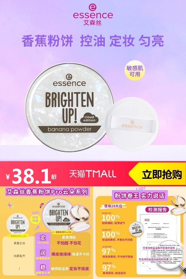 【立减4.9元,会员加赠经典粉扑,叠加淘金币低至36元】艾森丝essence香蕉粉饼Pro,持久哑光定妆散粉,细糯粉质。隐匿瑕疵,升级保湿配方,平衡水油油皮救星!不卡粉,不浮粉,好价快冲!