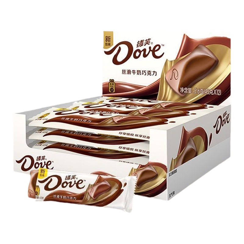推荐:德芙巧克力43g*12条榛仁丝滑牛奶巴旦木香浓黑巧排块小吃零食送礼
