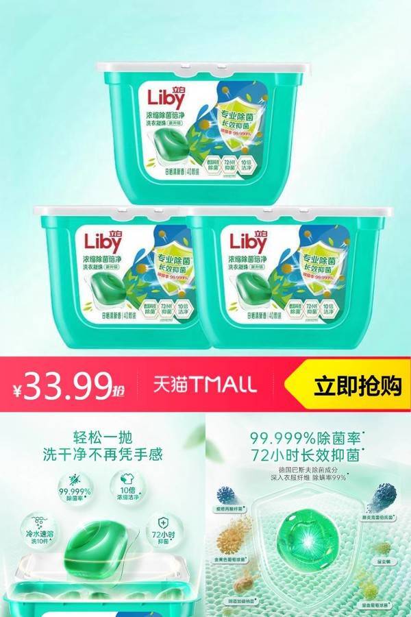【下拉秒杀,叠加88vip抵扣1.7 到手32.29,2-4块限时红包,最 低到手28 消费券后26】立白浓缩除菌倍净洗衣凝珠~去渍去污方便,高效洗衣,解决衣物清洁难题,全家衣物够量洗!