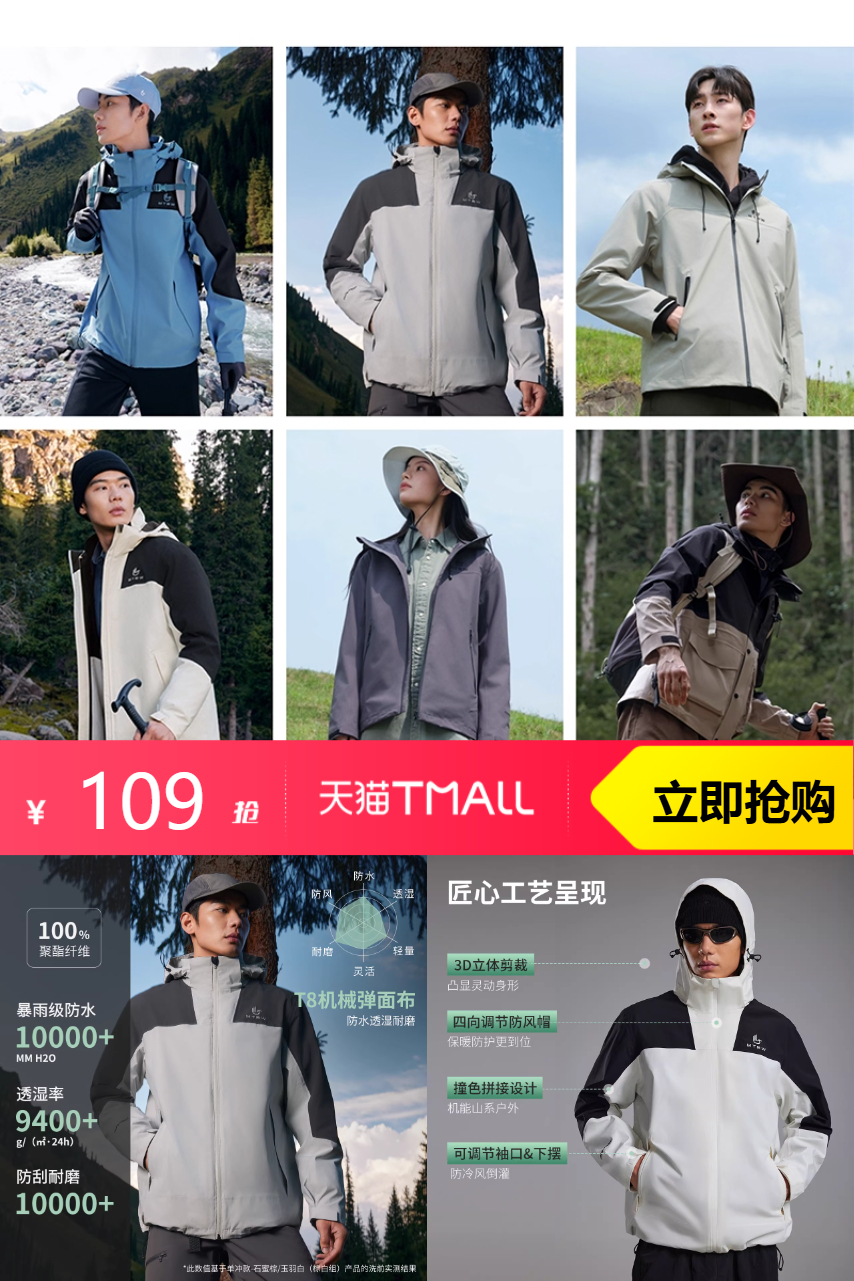 【20%礼金抵扣21.8,淘金币抵6元,凑消费券到手70元左右】【冲锋衣合辑】美特斯邦威冲锋衣男女同款,秋风起,美特邦威冲锋衣上线!男女同款,时尚与实用并存!2025新款,舒适度爆表!