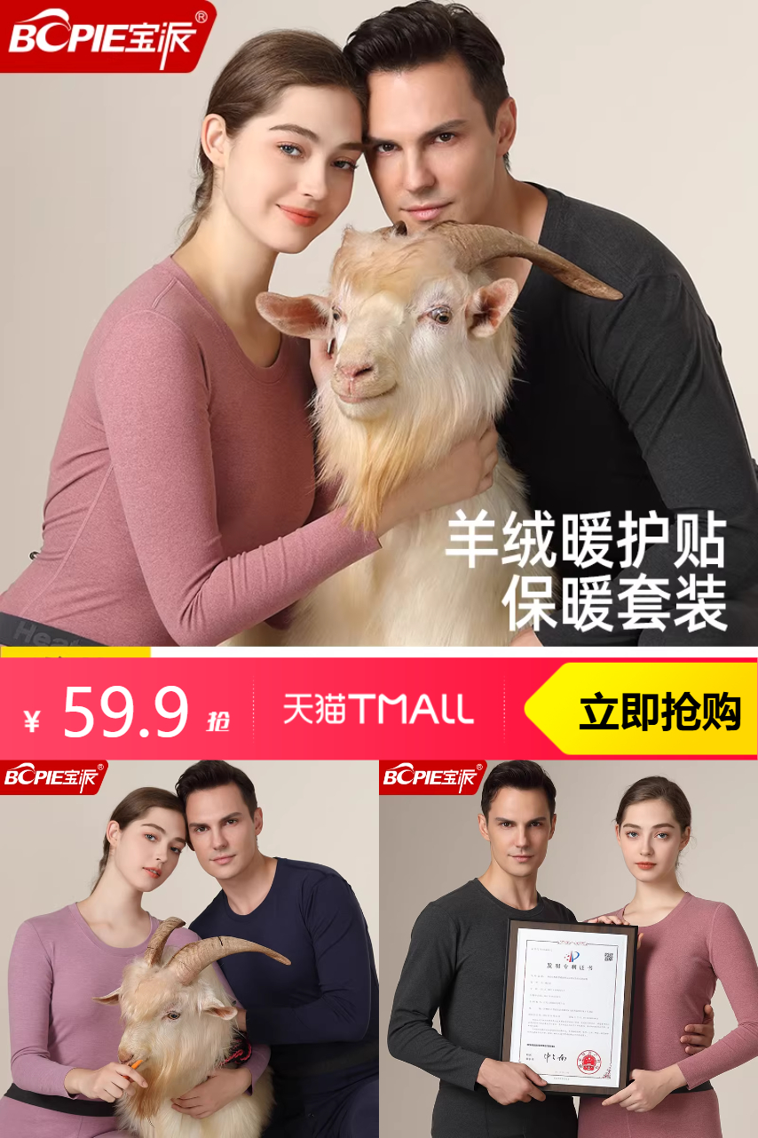 ⭕宝派保暖内衣套装恒温羊绒暖护贴情侣