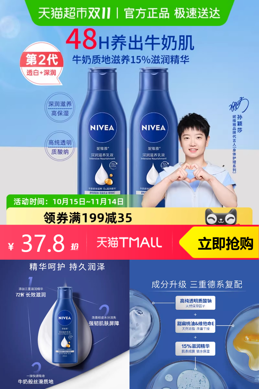 【淘礼金抵1.51元,淘金币抵扣3.92元,福袋3元,到手27.5元,凑单后到手23元】妮维雅深层润肤身体乳200ml*2,保湿补水润肤露护肤舒缓。