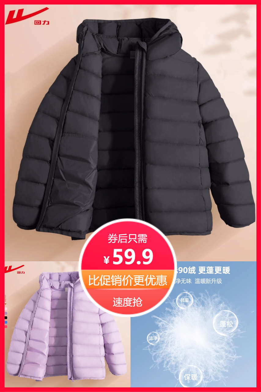 全码同价,多色可选!回力儿童羽绒服羽绒服/马甲合集 降价啦!羽绒服59.9,马甲39.9 大童110-160码,90白鸭绒85%的绒子含量. 降温啦,给娃安排起来,校服神器.快去冲鸭~【免费试穿赠运费险】