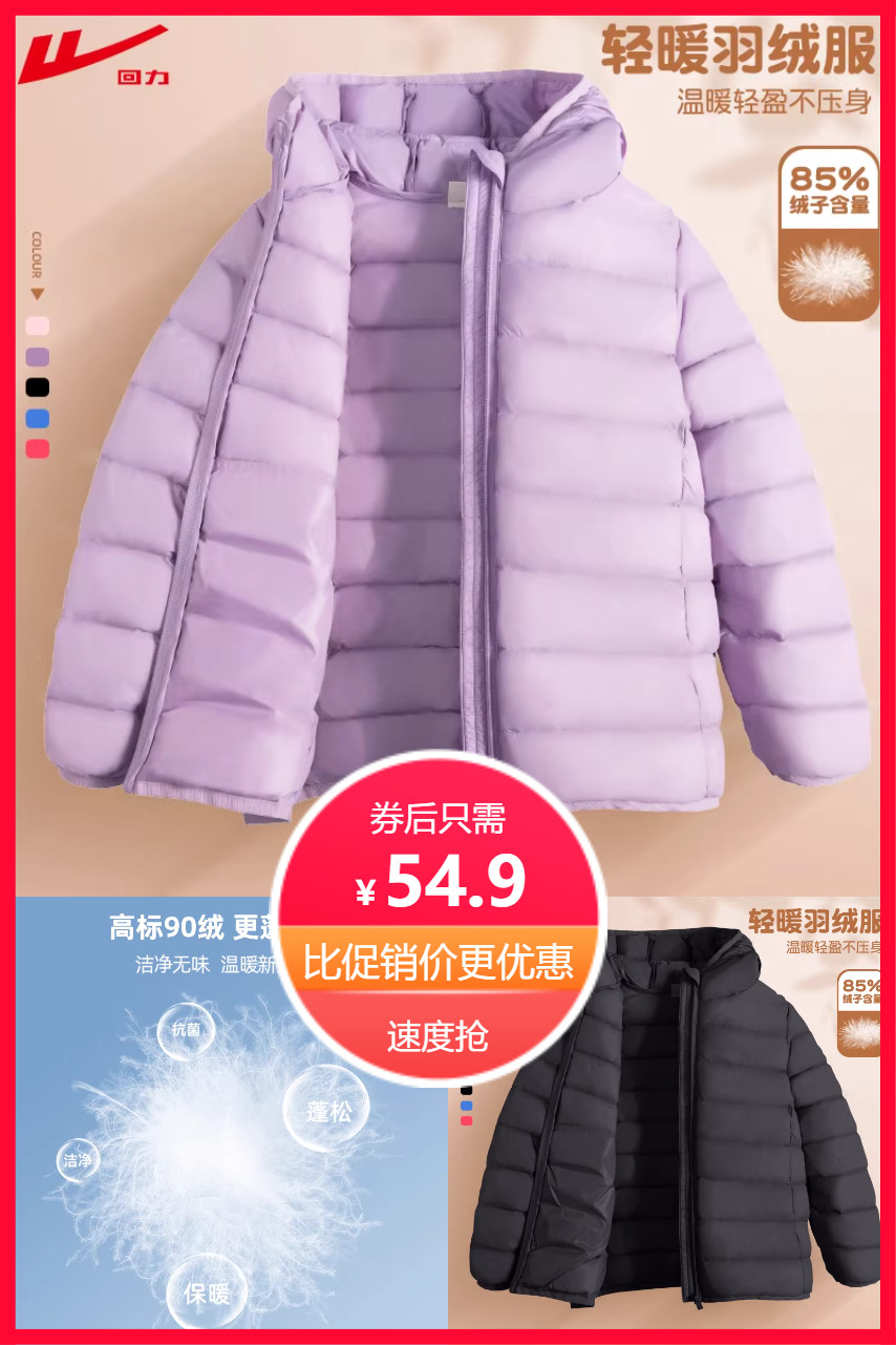 推荐:全码同价!回力新款儿童羽绒服/羽绒马甲