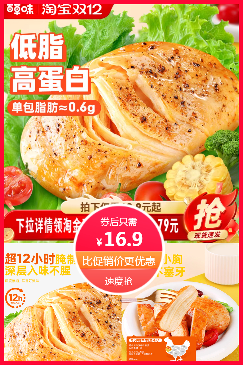 立减3.3元+淘金币1.64元+88vip+限时红包到手约12元,卷疯了!速度抢!比杂牌还便宜!这可是百草味的高蛋白鸡胸肉!低卡无热量,真的超适合减肥期的姐妹啊!!高蛋白,肉质细腻,吃起来一点也不柴!