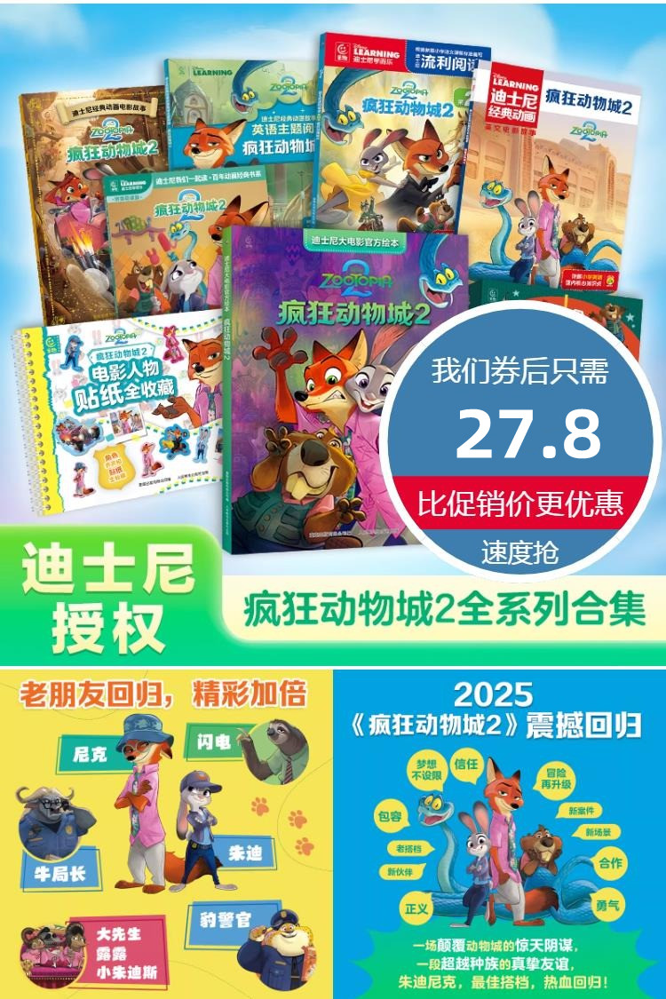 【官方正版】迪士尼授权!疯狂动物城2全系列合集,经典故事,拼音助读,小学四会500词,游戏互动页,献给大小朋友的勇气之书,悬疑+冒险+温情,亲子共读/独立阅读首选!儿童课外读物幼睡前故事书!
