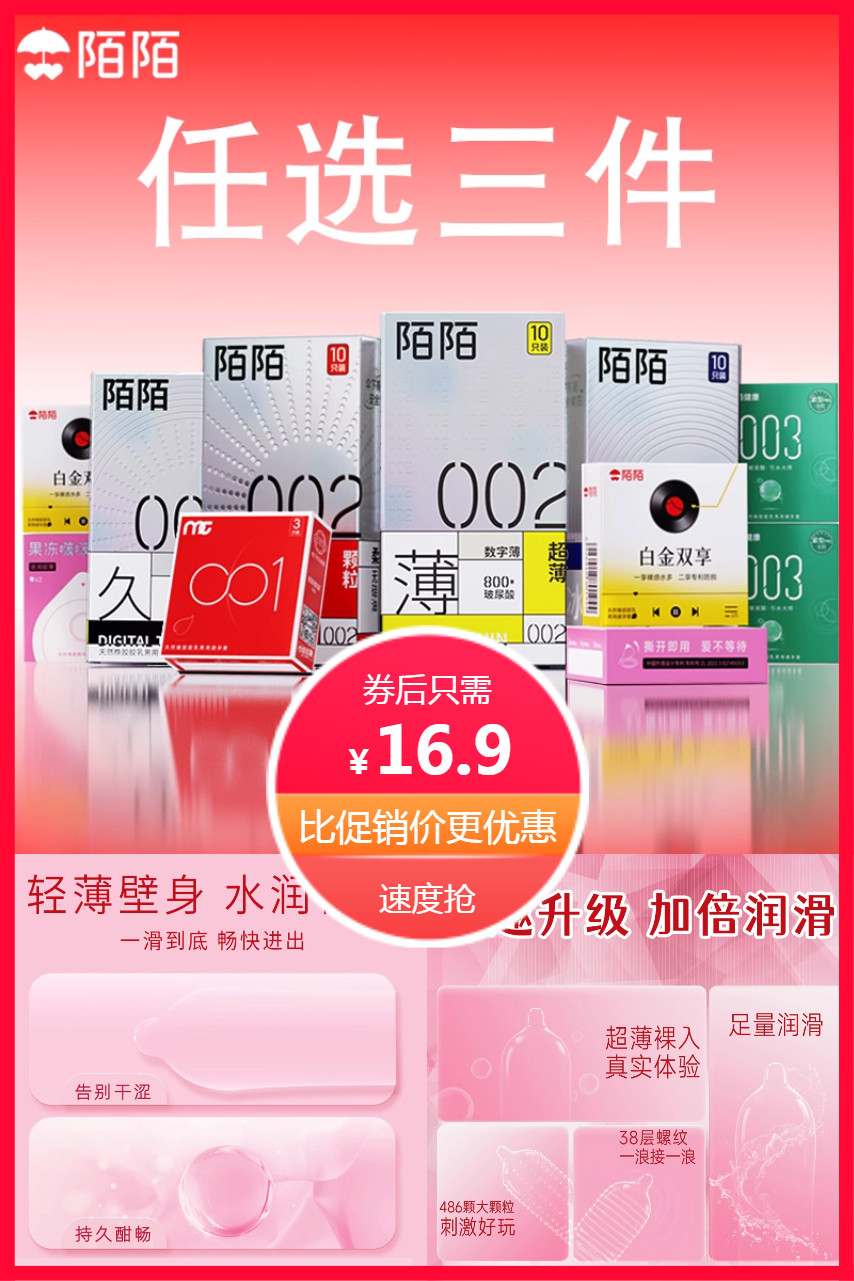 平均一次0.56元,给你不一样的体验,花小钱办大事【任选三件】螺纹颗粒持久避孕套30只,超薄水润爽滑,三件任选组合,呵护每一刻亲密体验~官方正品保障,玻尿酸润滑更亲肤,畅享丝滑舒适新体验!