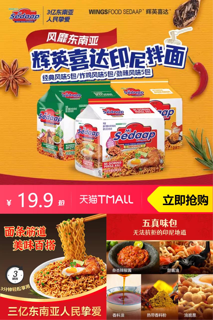 ⭕拍2!辉英喜达印尼进口干拌方便面捞面