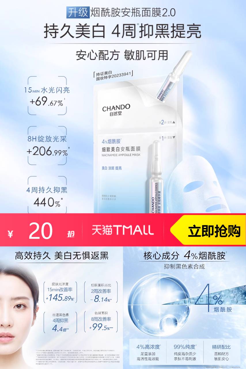 【下拉超补49-立减29=20元】(任选3件)自然堂烟酰胺安瓶面膜15片,保湿舒缓 沁润补水敏肌可用 店铺爆款。