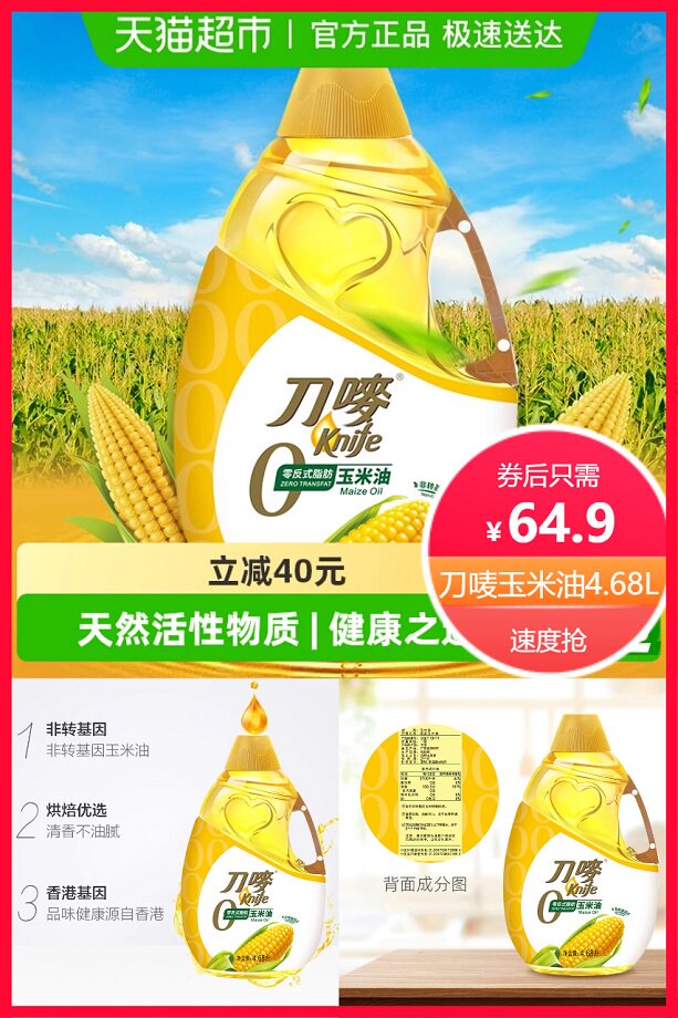 推荐:53元刀唛0反式脂肪酸玉米油4.68L