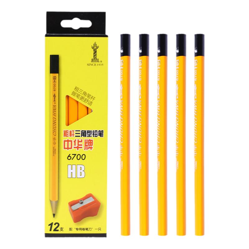 推荐:中华矫正握姿大三角铅笔HB小学生安全无毒一年级用三棱粗三角2B初学者粗杆幼儿园儿童加粗萝卜正姿练字铅笔