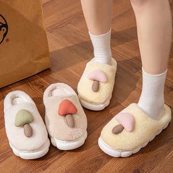 居家时尚棉拖鞋保暖新款室内舒适毛绒棉拖冬季家用冬天蘑菇型拖鞋