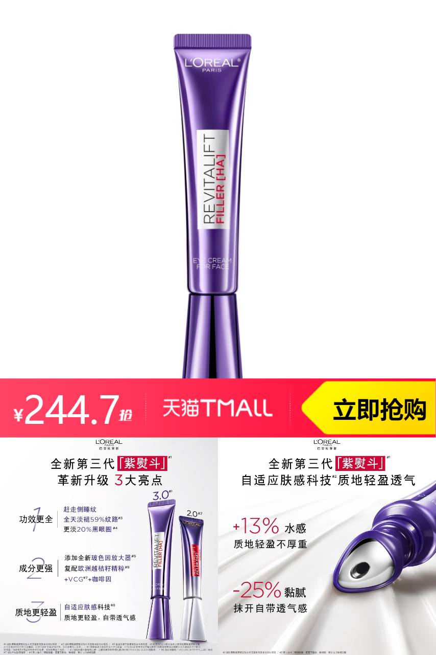 ⭕欧莱雅第三代紫熨斗眼霜玻色因抗皱