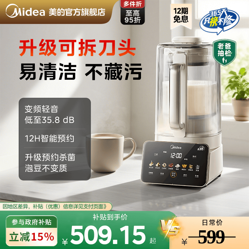 您的位置: 选单 > 数码家电 > 美的家用变频轻音可拆洗破壁机