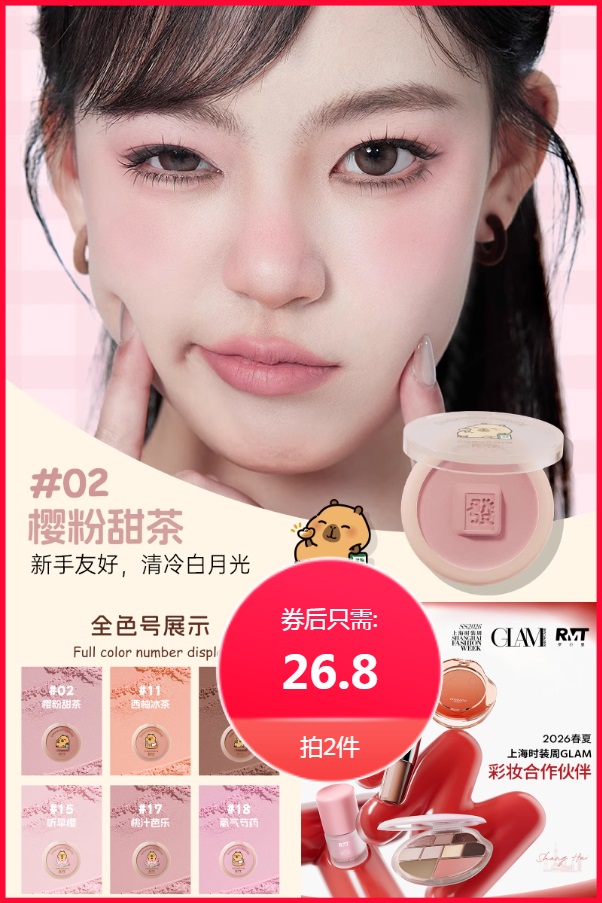 【叠消费券到手约24元】卡皮巴拉/比熊联名款‼修饰肤色,提亮肤色!全面升级,卡通印花!粉质细腻丝滑易延展,添加经包裹处理后的进口硅石,持久显色!特调多色系,打造元气自然颊色~