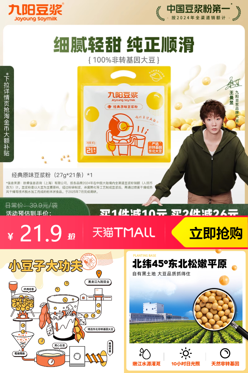 推荐:九阳豆浆经典原味豆浆粉21条*27g