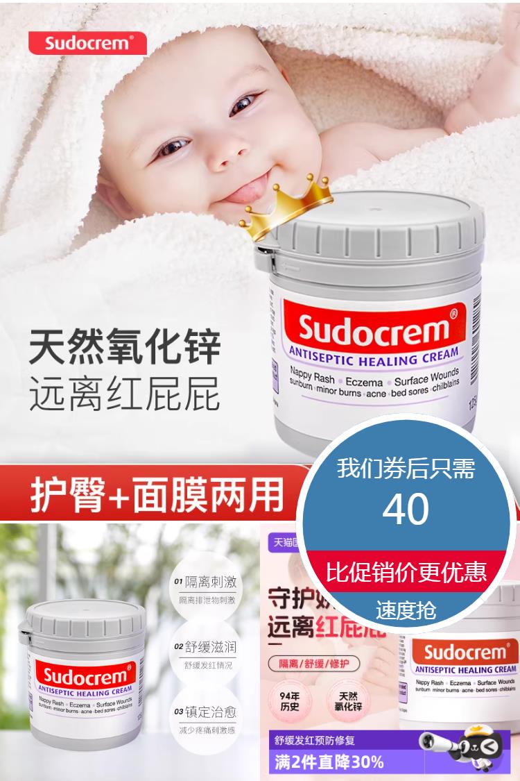 【125G大容量,叠加88会员淘金币到手仅需34】带娃妈妈都在偷用的护理秘诀!Sudocrem万能膏一瓶多用,不仅防红屁屁,还能舒缓湿疹痱子。奶油质地好推开,不黏腻不闷肤。宝宝健康,妈咪安心~【天猫国际保税仓发货】