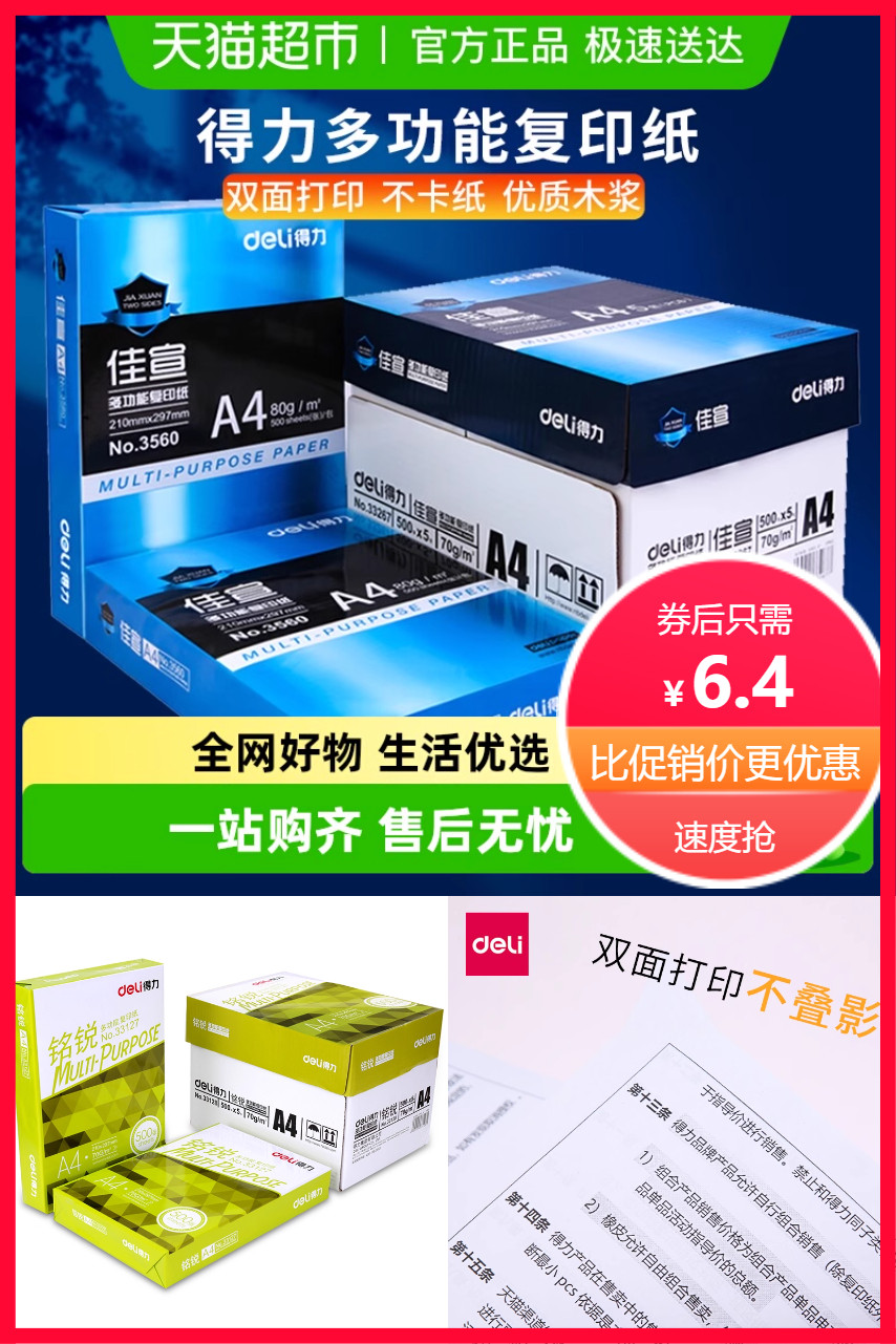 "得力A4打印纸批发,性价比高!办公必备!得力品质保证!! 高质量打印,复印无忧!!"