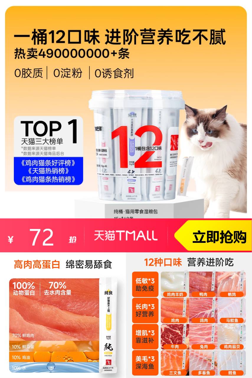 阿飞和巴弟猫条猫零食纯条桶补水48支 119.9元减47.9 商品纠错