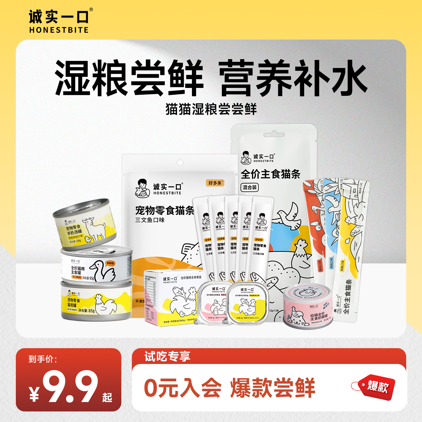 推荐:【湿粮尝鲜】诚实一口猫零食试吃猫咪补水湿粮主食猫条猫罐头餐盒