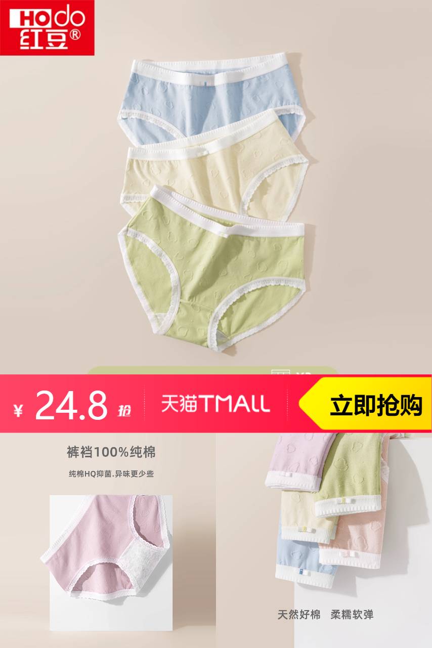 ⭕红豆女士内裤纯棉三角裤抗菌档中腰纯欲