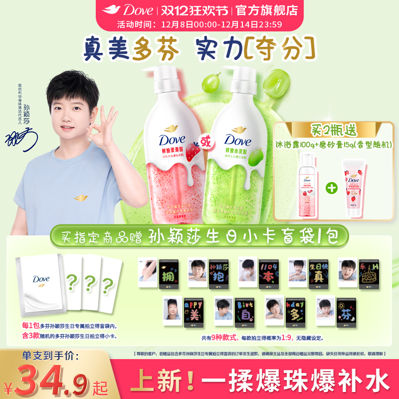 多芬果奶沐浴露补水保湿滋润,氨基酸草莓青提蓝莓正品