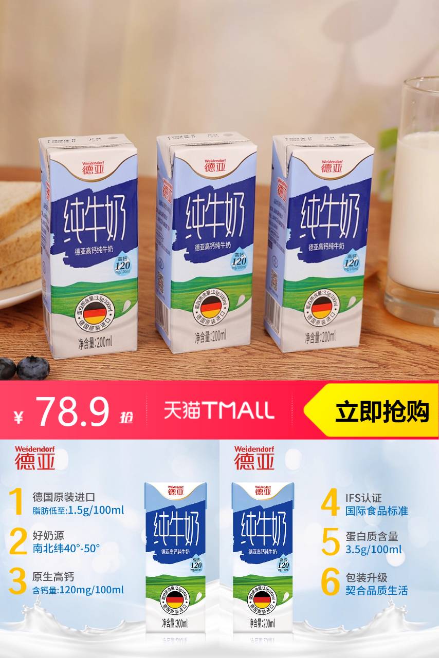 推荐:德亚德国进口高钙纯牛奶200ml*30盒