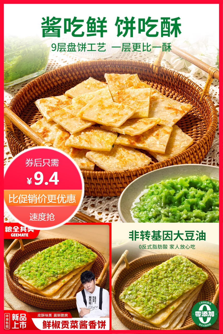 鲜椒贡菜酱香饼(含酱包),一口酥脆,鲜辣脆爽,轻食代餐,给生活添点滋味。