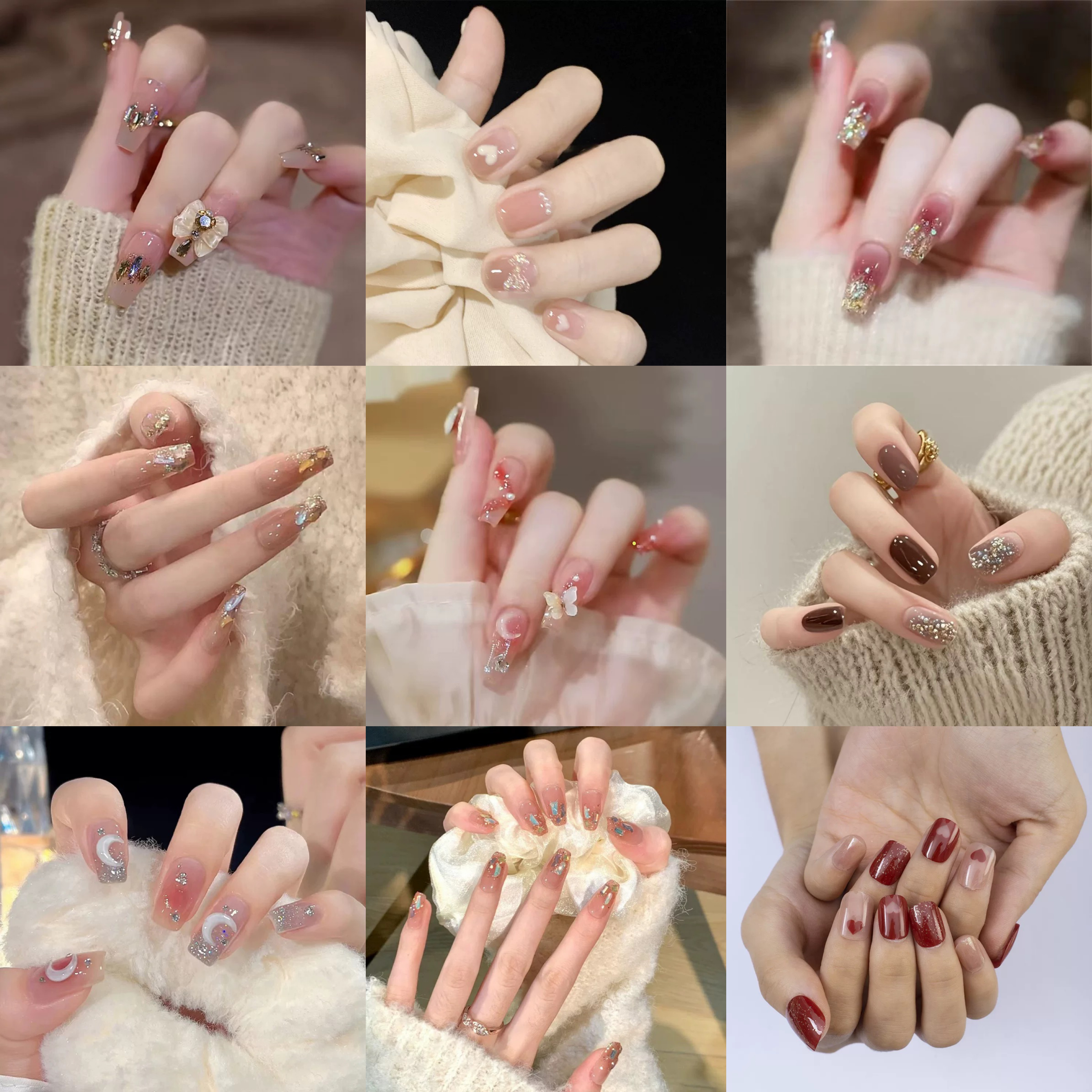 推荐:H「她非池物」气质手工穿戴甲碎钻蝴蝶爱心级感美甲穿戴甲24片