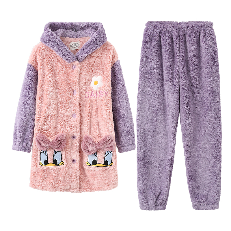 雪俐2025年新款睡衣女士秋冬季珊瑚绒加厚加绒网红卡通家居服套装