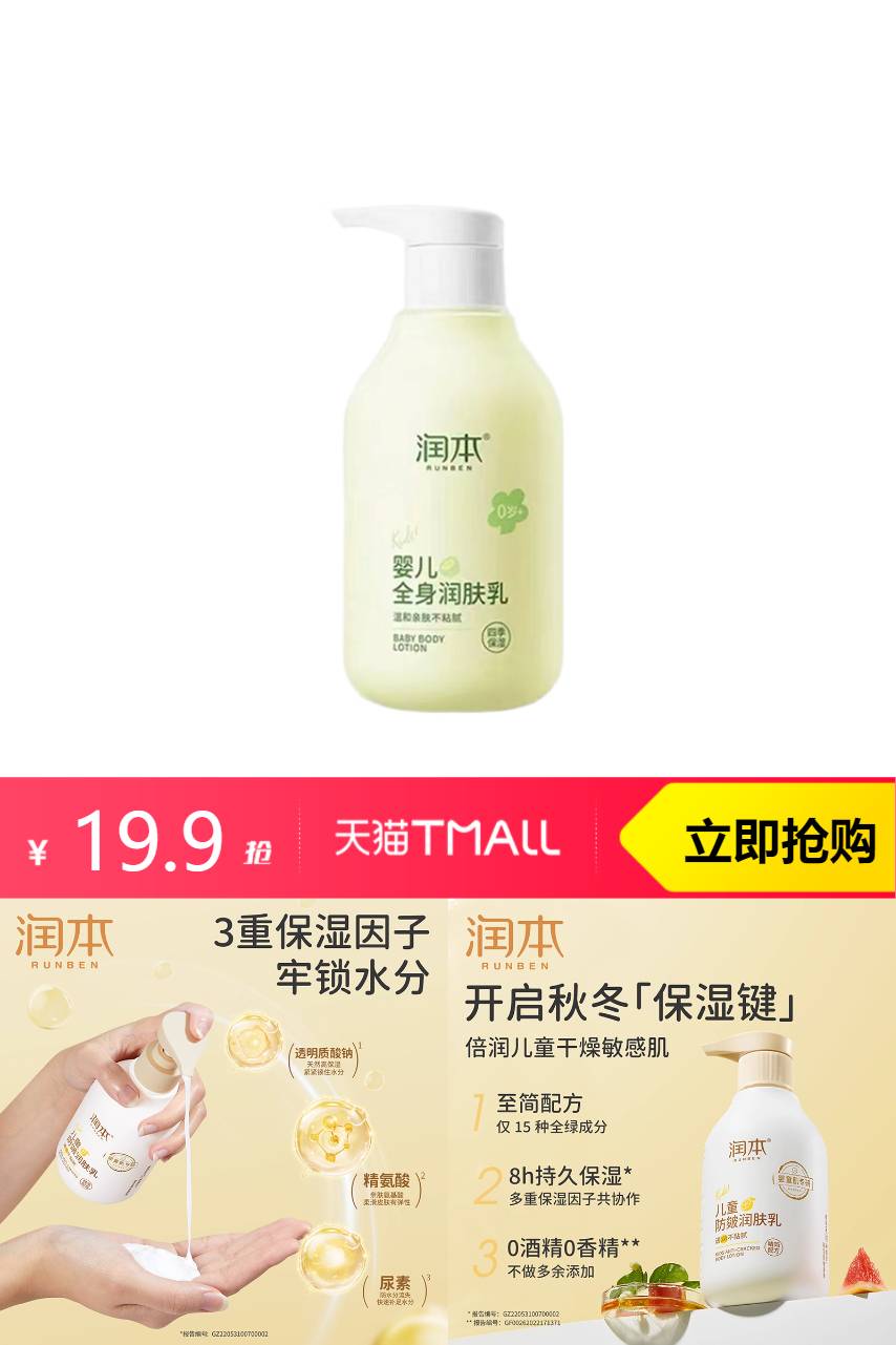 推荐:大牌润本儿童防皴四级热卖润肤乳300ml
