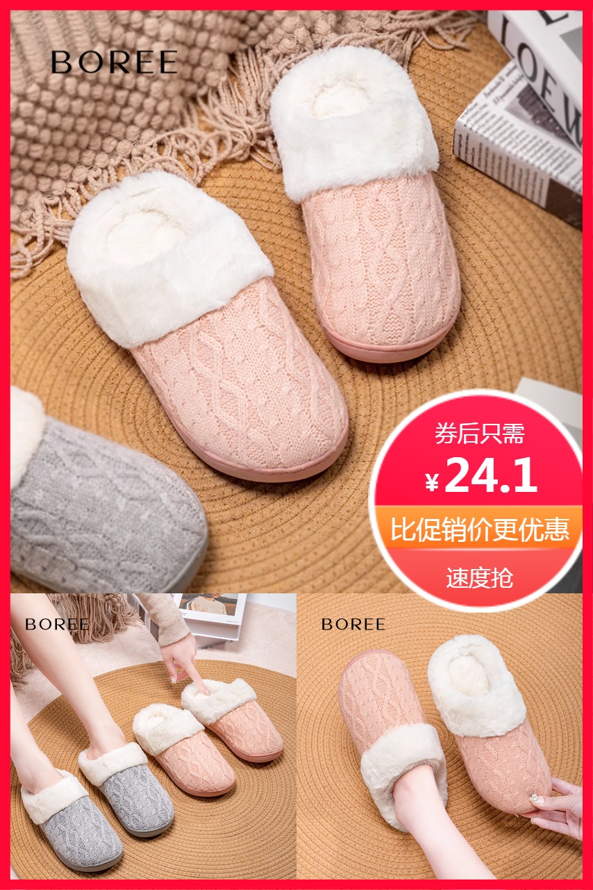 淘金币后到手约14元,宝人居家毛毛鞋女士2025秋冬保暖加厚防滑居家室内加绒棉拖,针织鞋面,保暖又舒适,毛绒内里,暖暖的很舒服,穿着无负担轻便随行。