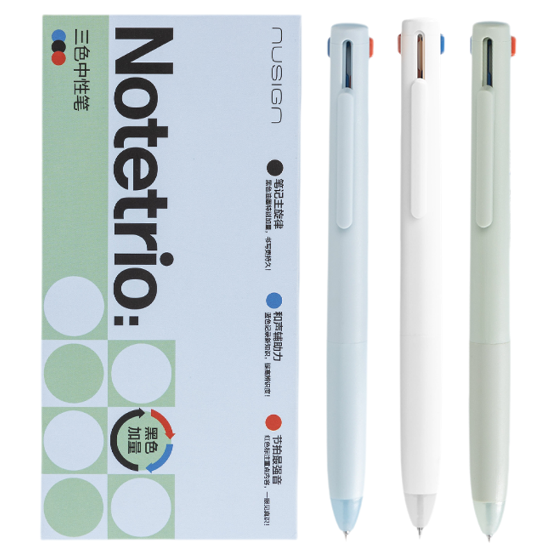 【备战985】Nusign纽赛红黑蓝三色笔按动多色笔模块笔多功能学生老师笔记高颜值得力三色合一中性笔简约红笔