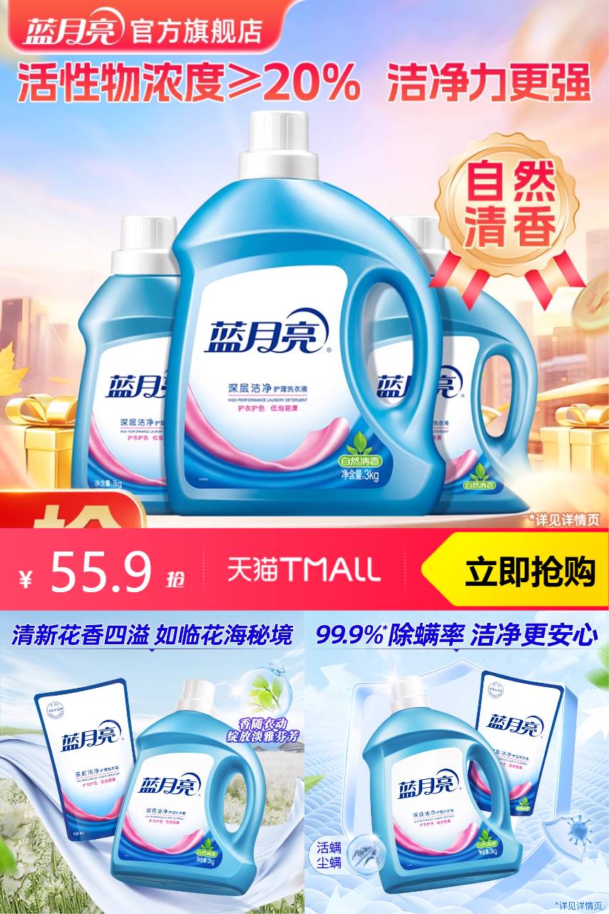 蓝月亮 蓝月深层洁净除螨全瓶装洗衣液10斤 84元减15 商品纠错