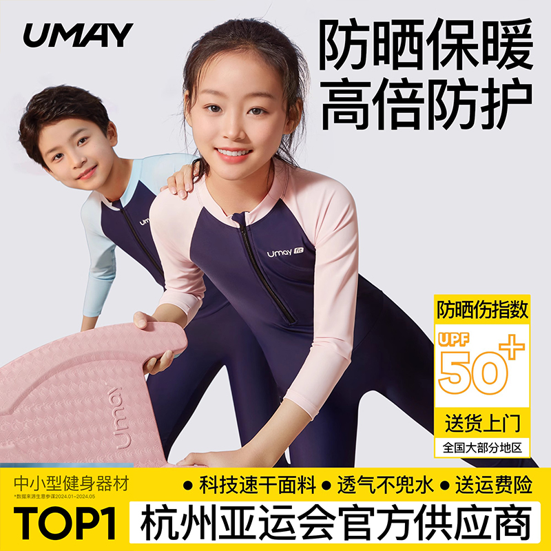 佑美儿童泳衣男童女童连体长袖防晒游泳衣中大童专业游泳装潜水服