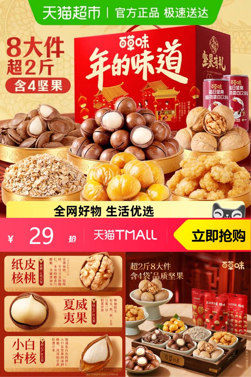 【88vip1.45,淘金币3.18,到手25左右】百草味坚果礼盒干果仁大礼包1070g/盒,甄选全球产地只挑饱满大果,满满8件零食,送人有面子 分享好美味~