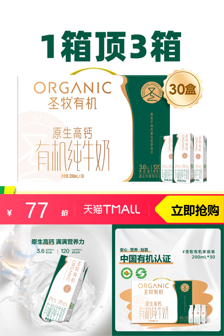 ⭕圣牧有机纯牛奶200ml*30盒高钙牛奶