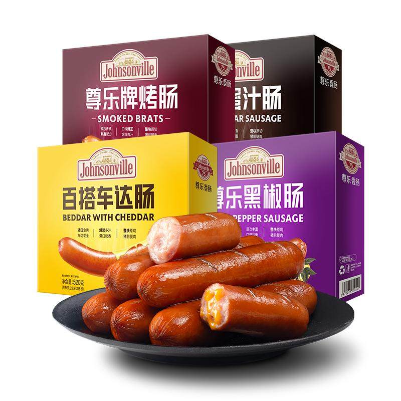 【原价142-百亿补贴66-金刚券7.6-淘金币4.26=到手价64.14,叠加消费券到手56.19】尊乐官方烤肠纯肉肠520g组合装爆汁香肠,品质优选~