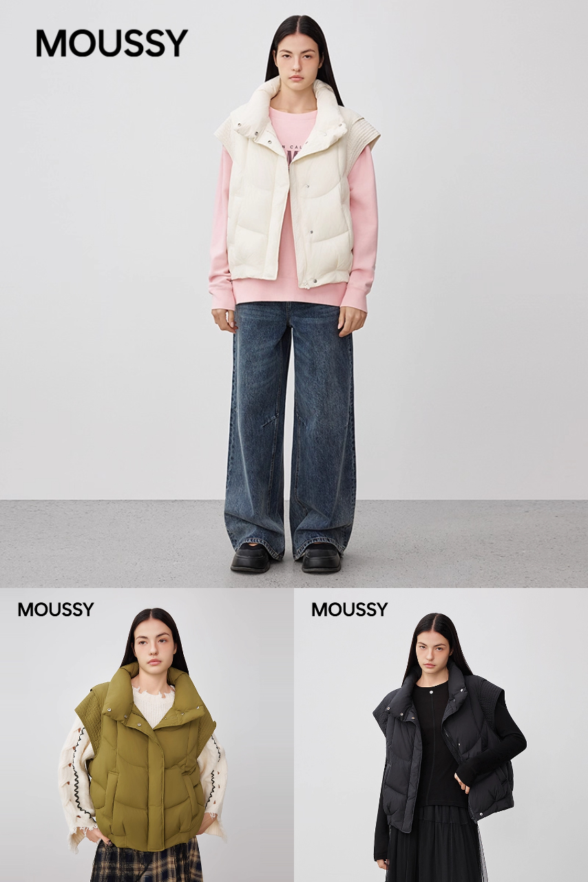 推荐:【90鸭绒】moussy新款短款立领羽绒马甲女