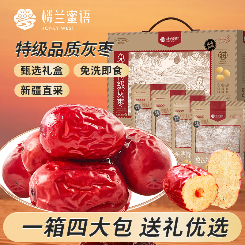 楼兰蜜语红枣特级新疆特产2000g礼盒,精选优质灰枣,免洗直接食用,品质。新疆特产,送礼佳选。