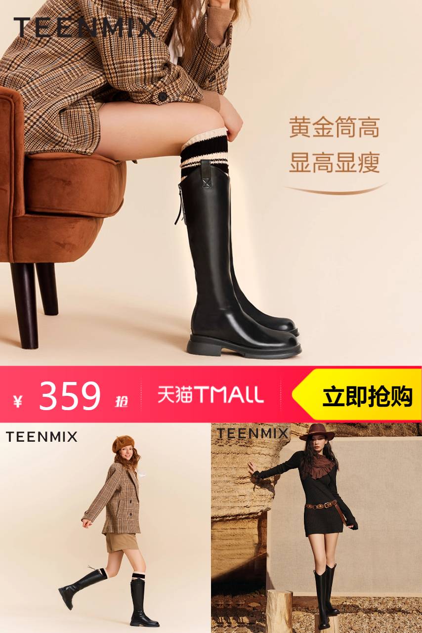 天美意 天美意厚底V口加绒骑士靴长靴女鞋子高筒 639元减180 商品纠错