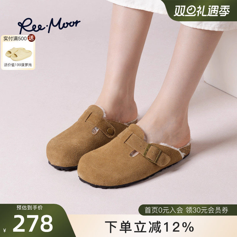 推荐:REEMOOR睿慕2025冬季新款勃肯鞋女包头半拖鞋外穿加绒休闲懒人鞋
