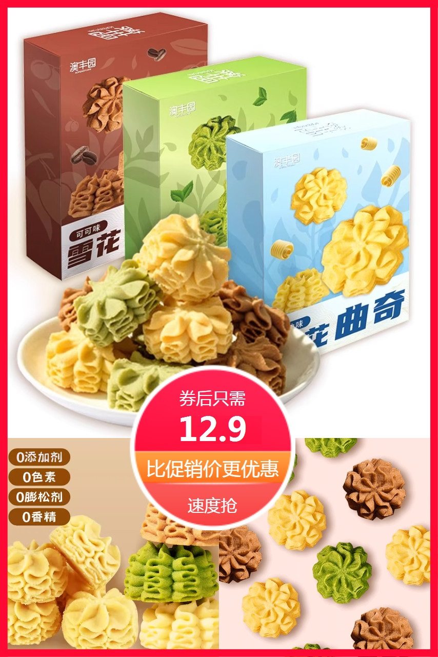 ⭕可可抹茶原味黄油曲奇饼干3盒礼盒装